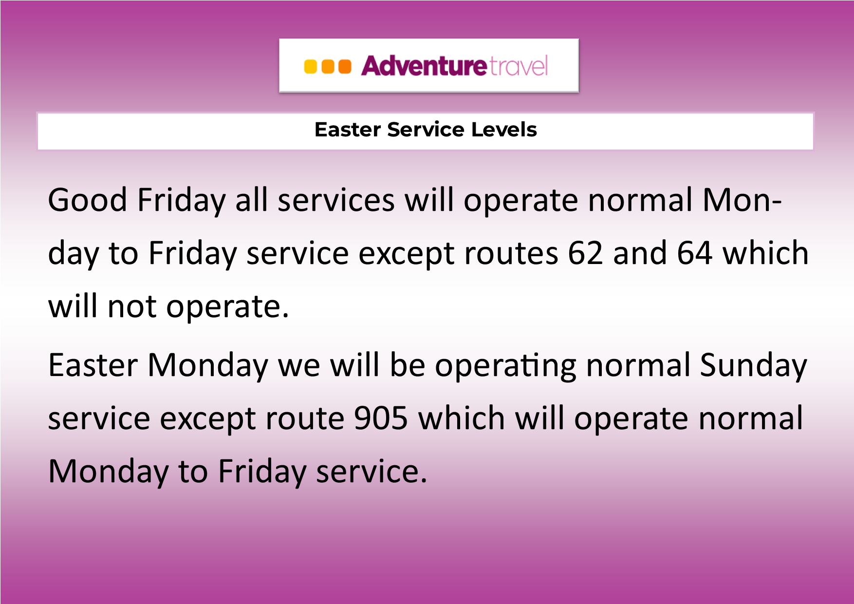 Easter Service Levels